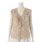 シャネル CHANEL シルク ココマーク ドット柄 総柄 フリル ノースリーブ シャツ ブラウス トップス P40221 マルチカラー 38【中古】【正規品保証】