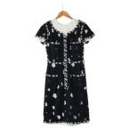 美品 フランス製 2013年 秋冬 シャネル CHANEL ファンシーツイード 半袖 ワンピース 裾ココボタン 38//ブラックホワイト【2400014207736】【中古】