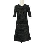 美品 CHANEL シャネル ライオンボタン ラメニットドレス ワンピース P57107 サイズ34 ブラック ゴールドカラー レディース 古着 中古
