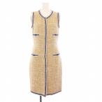 シャネル CHANEL 09P ツイード ノースリーブワンピース ひざ丈 チェック ココボタン ココマーク 36 ベージュ P34933V25182 /KH レディース