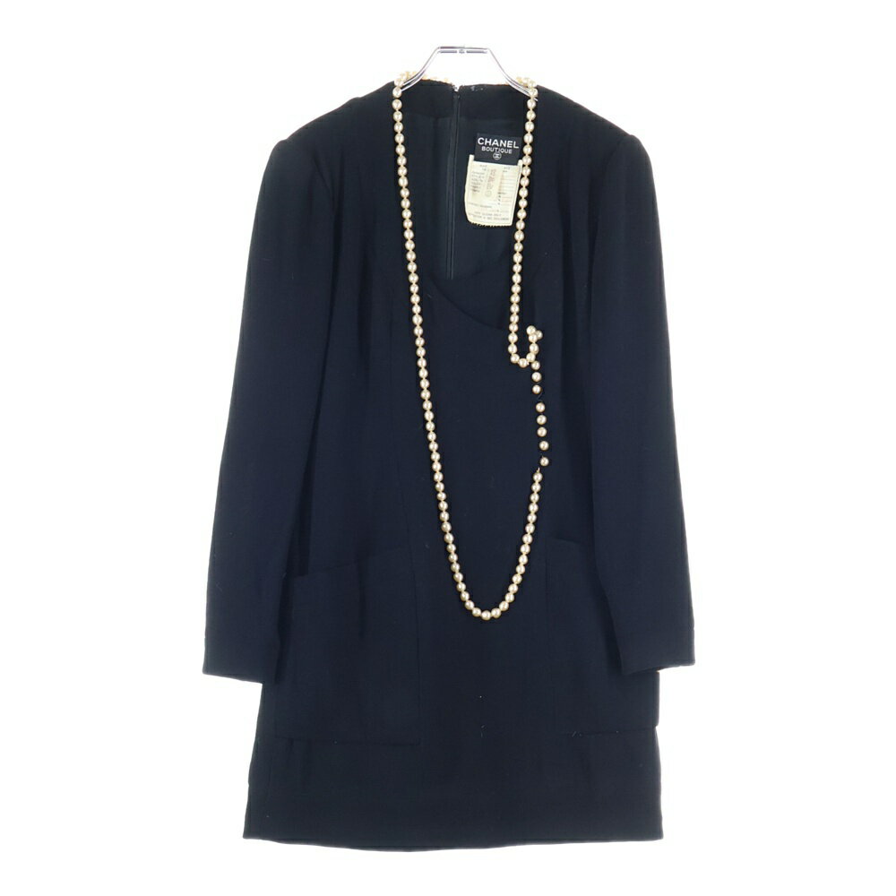 CHANEL(シャネル) サイズ:38 パールデザイン ナイロン混 ウール ミディアムワンピース ドレス ブラック レディース【中古】【程度B】【カラーブラック】【取扱店舗BRING心斎橋店】