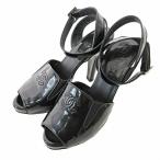 シャネル CHANEL ココマーク ステッチ サンダル エナメル アンクルストラップ ハイヒール 34 21cm ブラック 黒 0717 IBO73 レディース