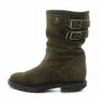 シャネル CHANEL エンジニアブーツ ショートブーツ ヌバック ココマーク スエード ローヒール 35.5 カーキ /BB ■MT ■GY19 レディース