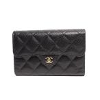 シャネル 三つ折り財布 ココマーク ゴールド金具 クラシック ミディアム フラップ ウォレット マトラッセ キャビアスキン AP0232 レディース CHANEL 中古