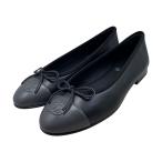 シャネル パンプス ココマーク リボン バレリーナシューズ G02819 X01000 NR093 23B 36サイズ ラムスキン ブラック ダークグレー CHANEL