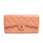 シャネル 長財布 ココマーク シルバー金具 サーモンピンク系 マトラッセ レディース CHANEL 中古