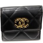 シャネル 三つ折り財布(小銭入れあり) シャネル19 スモールフラップウォレット ラムスキン 黒 ゴールド金具 AP1064 B04852 94305