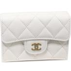 シャネル 三つ折り財布(小銭入れあり) クラシックスモール フラップウォレット グレインドシャイニーカーフスキン 白 ゴールド金具 AP0230