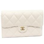 シャネル 二つ折り財布(小銭入れあり) マトラッセ ミディアム クラシックフラップウォレット キャビアスキン 白 ゴールド金具 AP0232