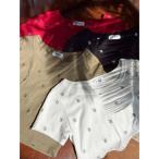 tシャツ 「mily bilet」指先も胸元も、あざと可愛い。ロゴ刺繍ヘンリーネッククロップドテレコリブカットソー レディース