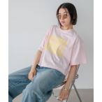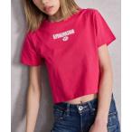 tシャツ ピグメント加工ロゴプリントショート丈Tシャツ レディース
