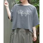 tシャツ ピグメント加工ロゴプリントショート丈Tシャツ レディース