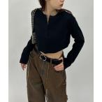 tシャツ 「mily bilet」指先も胸元も、あざと可愛い。ロゴ刺繍ヘンリーネッククロップドテレコリブカットソー レディース