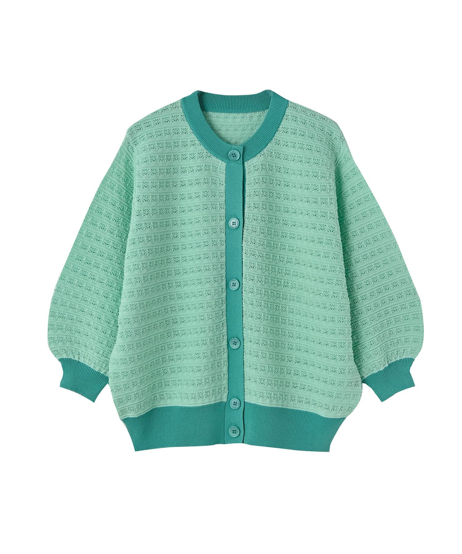 STYLE DELI(スタイルデリ)/【BLK001】透かし編みバイカラー半袖カーディガン
