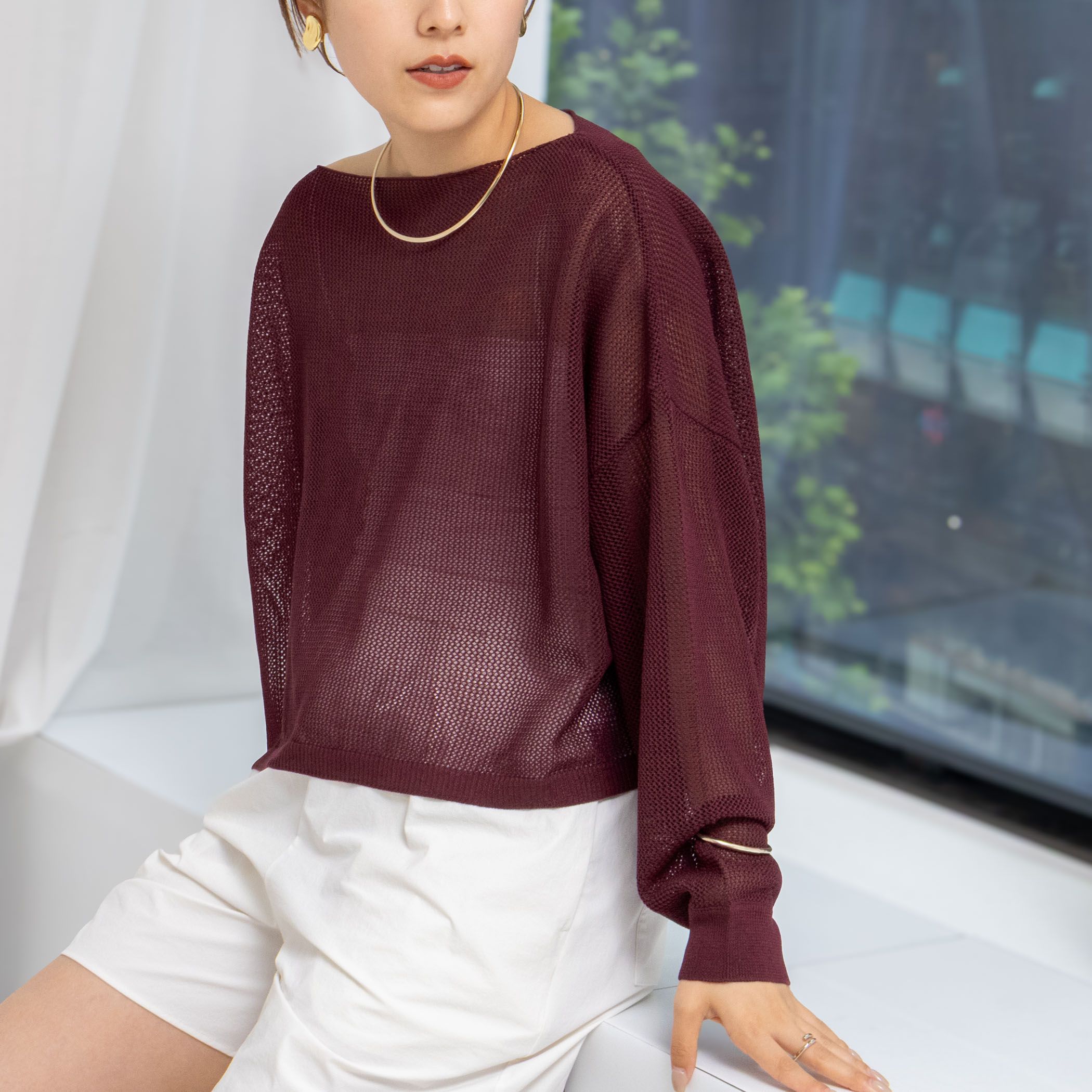 NOLLEY’S(ノーリーズ)/《手洗い可能》ドライメッシュショートプルオーバーニット