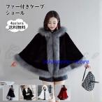 ファー付きケープ レディース ショール 無地 フード付き トップス マント カジュアル 寒さ対策 保温 防寒 暖かい ゆったり 冬用 アウター おしゃれ