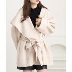 コート アウター ショール付きウール混ロングコート レディース