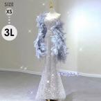 カラードレス パーティードレス イブニングドレス ウェディングドレス マーメイドドレス グレー シルバー ステージ 発表会 フォーマルドレス ファーショール