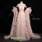 カラードレス 2点セット ショール フリル チュール ピンク オフショルダー ウェディングドレス 二次会 演奏会 発表会 ロングドレス 結婚式 ステージドレス
