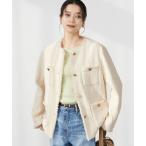 ジャケット ノーカラージャケット 「通勤・セレモニー対応」 コットンツイードジャケット レディース