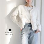 ツイードジャケット レディース ノーカラージャケット ショート丈 ツイード ジャケット ノーカラー きれいめ 長袖 フォーマルジャケット オフィス 入