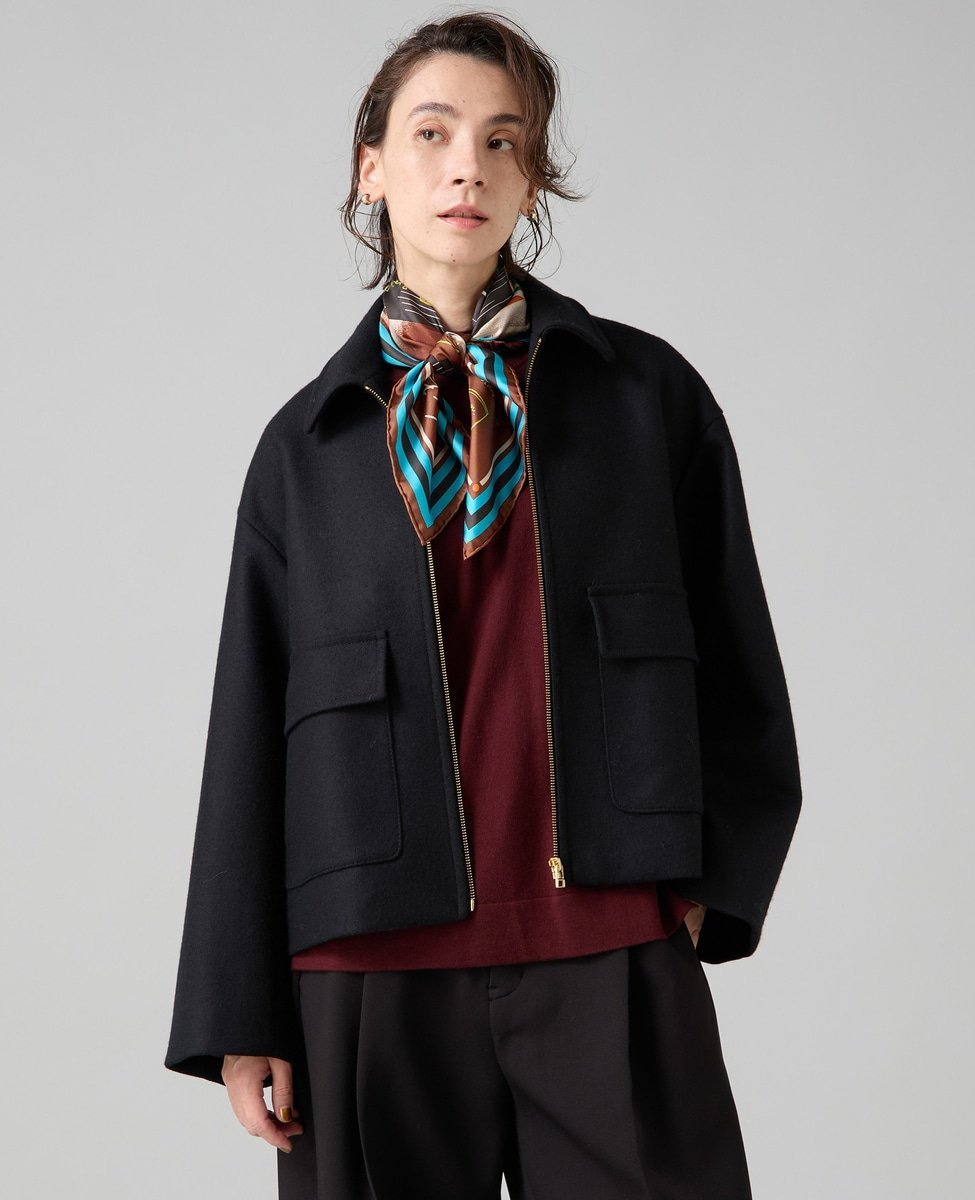 Liesse ショート丈ウールブルゾン リエス ジャケット・アウター ブルゾン・ジャンパー ベージュ ブラック【送料無料】