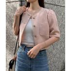 ★50%OFF★ ジャケット カーディガン レディース 【ゆうメール便送料無料】 ツイード ショート丈 シャツ風 くるみボタン おしゃれ シンプル 大人 きれいめ フォーマル ( シャツ風くるみボタンツイードジャケットカーディガン )