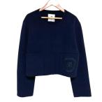 美品 FOXEY BOUTIQUE フォクシー ブティック JACKET DAPHINE カシミヤ100% ショート丈 ノーカラージャケット 43980 40 ネイビー レディース 古着 中古