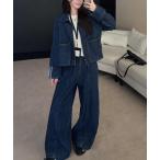 セットアップ ジップアップ ジャケット ワイドパンツ デニムセットアップ レディース