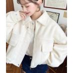 ブルゾン アウター ショート丈ジップアップスタンドネックフェイクスエードブルゾン レディース
