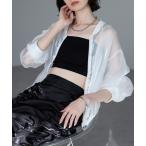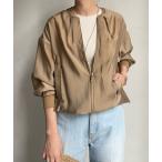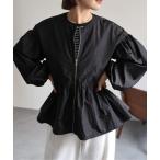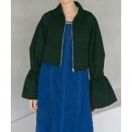 ジャケット ノーカラージャケット フロッキードットジップアップバルーンスリーブジャケット レディース