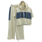 アビトーキョー セットアップ F ライトベージュ ジャケット パーカー 半袖 ジップアップ ワイドパンツ イージー ラインストーン装飾