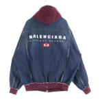 バレンシアガ 25SS PATCHED DENIM JACKET ドッキング加工 ジップアップフーデッド デニムジャケット インディゴ/レッド 824304 TRW62