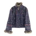 シャネル ココマークボタン シルク混 モヘアツイード スパンコール装飾 ファー ジップアップジャケット レディース P39534V28358