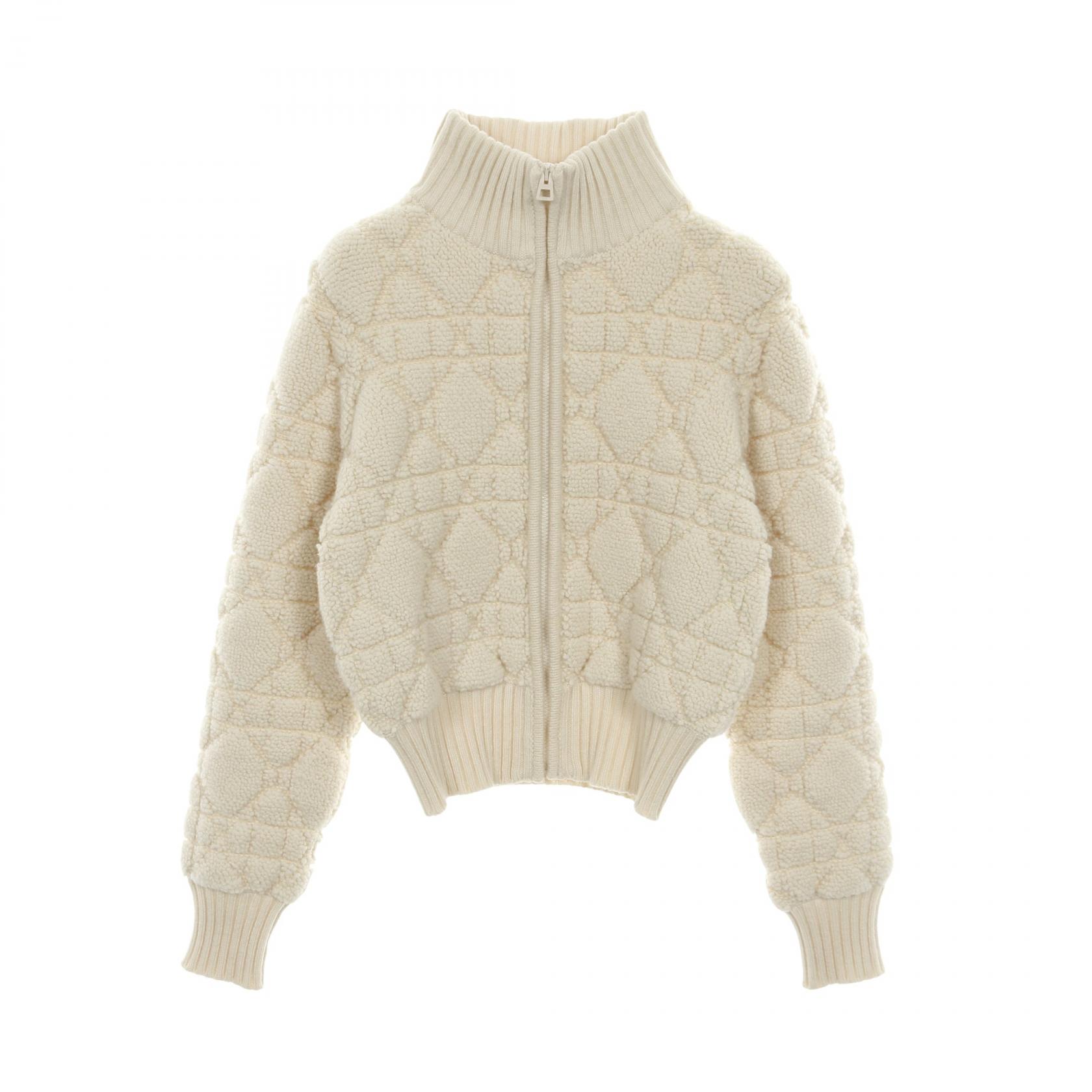 ≪5%OFF&まとめ買い対象≫ディオール Dior マクロカナージュ ジップアップニットジャケット カーディガン 衣料品 トップス ウール カシミヤ ナイロン レディース アイボリー系 【中古】