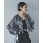 ジャケット ノーカラージャケット フロッキードットジップアップバルーンスリーブジャケット レディース