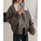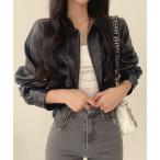 ブルゾン アウター ジップアップ フェイクレザージャケット レディース
