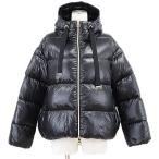 【美品】Herno ヘルノ ダウンジャケット ジップアップ フーディー ロゴ リラックスフィット ナイロン100% レディース 40 ダークネイビー