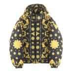 VERSACE ヴェルサーチ メデューサ バロック総柄プリント フーデッド ジップアップ ダウンジャケット ブラック/イエロー A85195