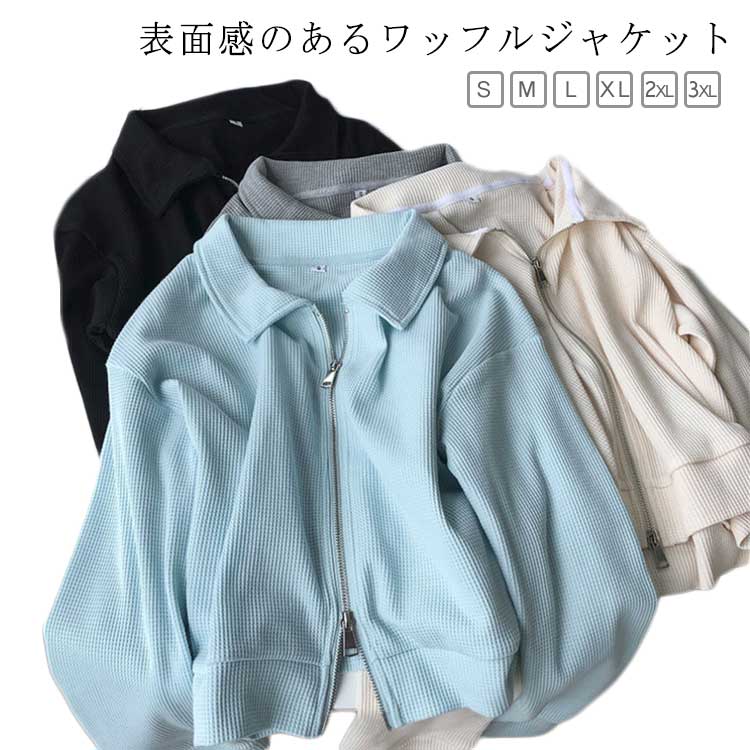 ワッフル ジャケット レディース ジップアップ カーディガン ショート丈 アウター ブルゾン パーカー ライトアウター トップス 長袖 軽量 羽織り ワッフル生地 春アウター 大きいサイズ お洒落 カジュアル 春 春服 秋 秋服 送料無料