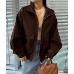 ブルゾン アウター ドロップショルダー ドロスト付き フロント ジップアップ ジャケット レディース