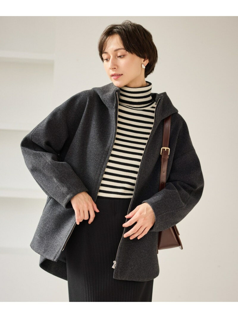 【SALE/10%OFF】ROPE' PICNIC ジャージーメルトンシリーズ ジップアップフーデッドコート/無地・チェック/リンクコーデ ロペピクニック ジャケット・アウター ブルゾン・ジャンパー ブラック グレー ブラウン ベージュ【送料無料】
