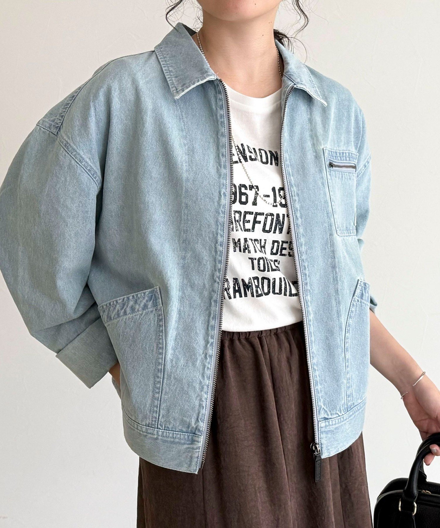 【ブラックフライデー★26%OFF】【秋冬新作】デニムジャケット / 公式 CUBE SUGAR 配色 切替 デニム ジップアップ ブルゾン (2色): アメカジ レディース アウター ジャケット ライトアウター Gジャン ジーンズ リメイク風 カジュアル キューブシュガー