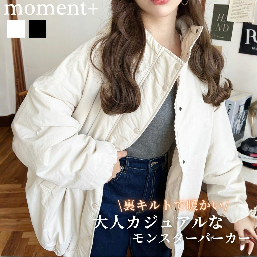 【19%OFF 5,990→4,800円】ブルゾン アウター ダウン ナイロンジャケット オーバーサイズ 体型カバー スタンドカラー 裏キルト ジップ 防寒 暖かい 着回し ゆったり シンプル レディースファッション 大人カジュアル 2025AW 秋 冬 mt01025[moment+/モーメントプラス]