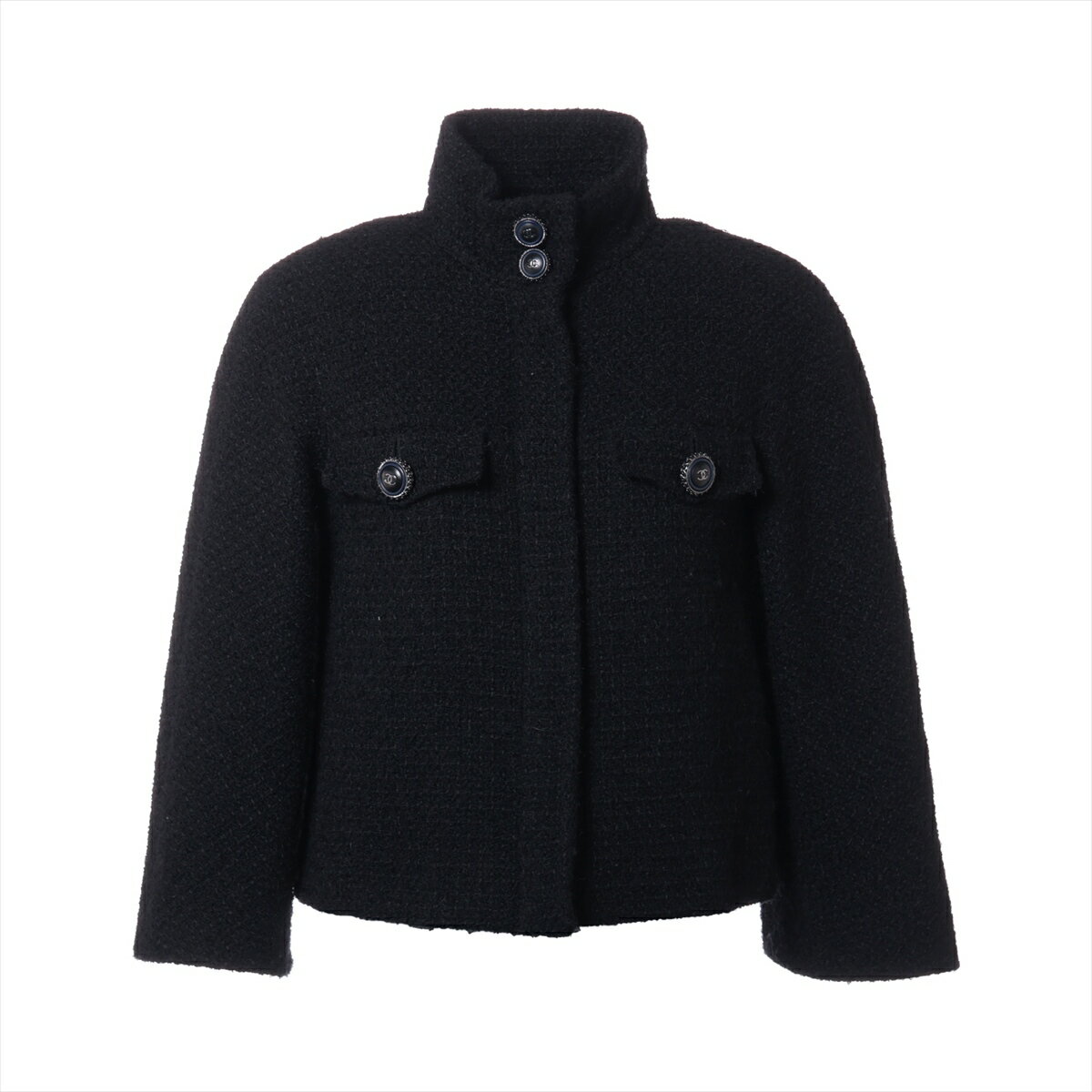 【中古】シャネル ココボタン ウール×ナイロン ジャケット 34 レディース ブラック P62026V19676 スタンドカラー ツイード