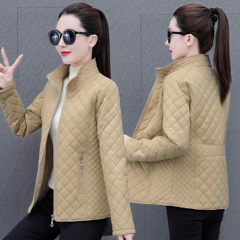 ダウンジャケット レディース ライトアウター 薄手 ショート丈 ひし形 キルティング スタンドカラー 中綿 あったか 防寒 ミセス 婦人服 カジュアル ブラック ベージュ カーキ ネイビー ワインレッド