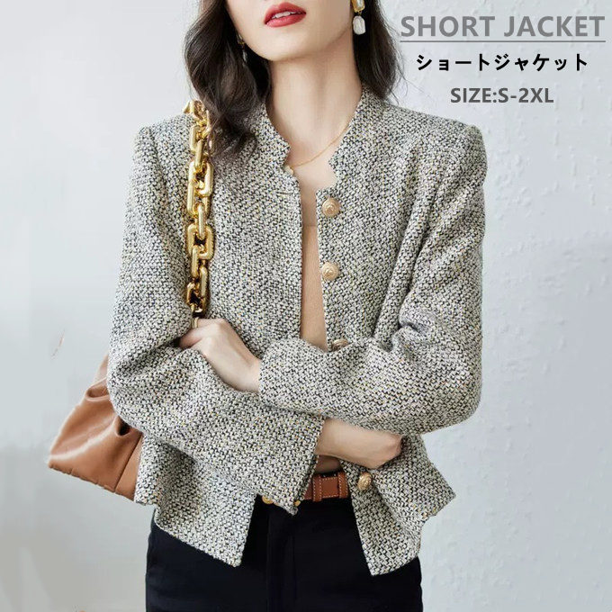 ジャケット レディース 長袖 ショート丈 ラシャ エレガント スタンドカラー シングル アウター フォーマル 細見え 着瘦せ 通勤 きれいめ ゆったり おしゃれ オフィス スーツ 式典 秋 秋服 秋物 春 春服 春物 新作 送料無料