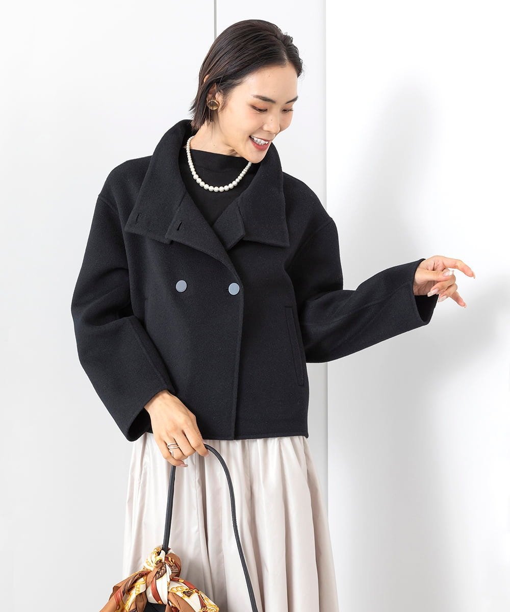 【SALE/30%OFF】MICHEL KLEIN(小さいサイズ) [小さいサイズ]SUPER100sラムウールスタンドカラーショートコート メゾンドゥサンク ジャケット・アウター その他のジャケット・アウター ブラック ホワイト【送料無料】