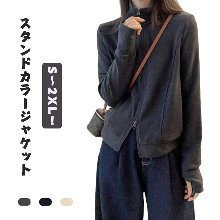 ジャケット スタンドカラー レディース アウター ジップアップ パーカー 微起毛 長袖 立ち襟 ダブルジップ カジュアル 羽織 暖かい 春秋 ライトアウター おしゃれ 春服 秋服 送料無料