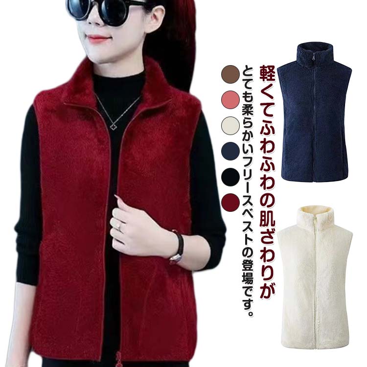 ボアベスト ボアジャケット レディース フリース ジャケット ノースリーブ フリースベスト アウター 暖かい あたたかい 立ち襟 インナーベスト軽くてふわふわの肌ざわりがとても柔ら...